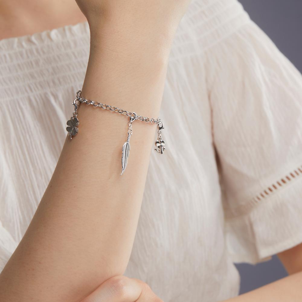 Dieser charmante Damen-Charms aus hochwertigem Silber zeigt ein detailliertes Kleeblatt als Symbol für Glück und Schutz. Perfekt als Anhänger für Armbänder oder Ketten, verbindet er elegantes Design mit positiver Bedeutung – ein tolles Geschenk oder eigenes Accessoire für jeden Anlass.