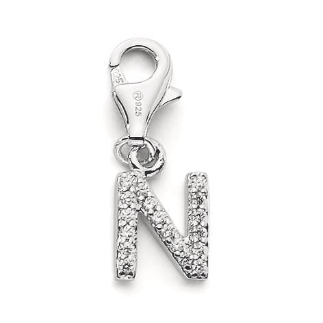 Eleganter Damen-Charms aus hochwertigem 925er Silber, verziert mit funkelnden Zirkonia-Steinen. Das stilvolle Design in Form des Buchstabens "N" lässt sich einfach an Armbändern oder Ketten befestigen und verleiht jedem Outfit eine persönliche Note. Perfektes Geschenk!