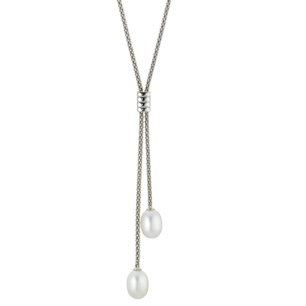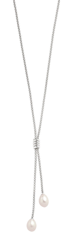 Elegantes Damen-Collier aus glänzendem Silber mit zwei zarten Perlenanhängern. Das feine Kettendesign verleiht jedem Outfit eine edle Note und macht das Schmuckstück zum perfekten Begleiter für besondere Anlässe oder den Alltag. Ein zeitloser Klassiker für stilbewusste Frauen.