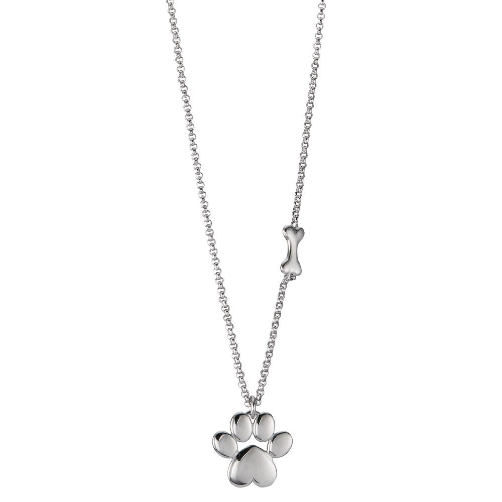 Dieses Damen-Collier aus hochwertigem Silber besticht durch seinen liebevollen Pfoten-Anhänger und ein kleines Knochendetail am feinen Gliederkettchen. Ein stilvolles und verspieltes Schmuckstück für Tierliebhaberinnen, das jeden Look charmant ergänzt.