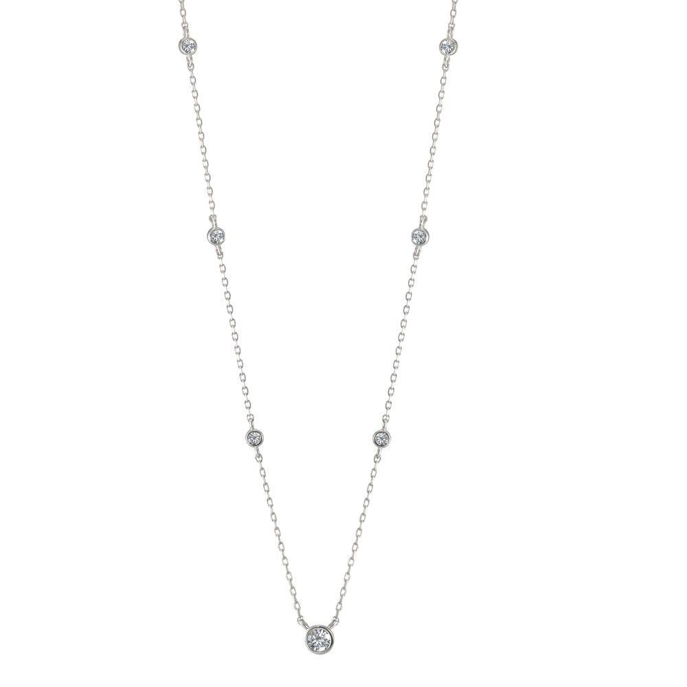 Collier Silber Zirkonia 7 Steine rhodiniert 35-40 cm verstellbar
