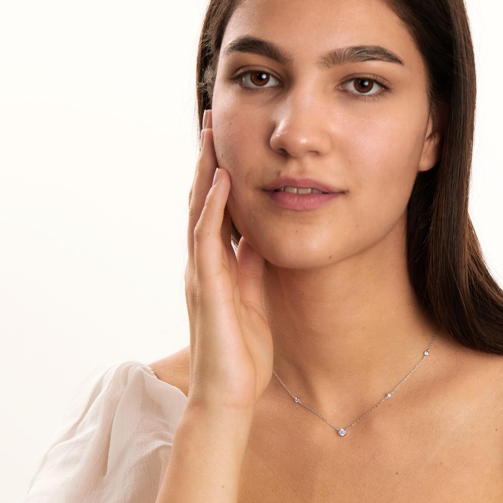 Elegantes Damen-Collier aus feinem Silber, besetzt mit glitzernden Zirkonia-Steinen. Die filigrane Kette verleiht jedem Outfit einen dezenten und edlen Look – perfekt für besondere Anlässe oder den Alltag. Ein zeitloses Schmuckstück voller Eleganz und Stil.