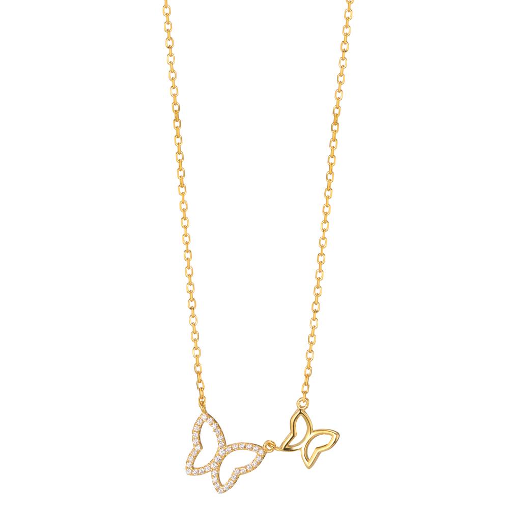 Collier Silber Zirkonia gelb vergoldet Schmetterling 40-45 cm verstellbar