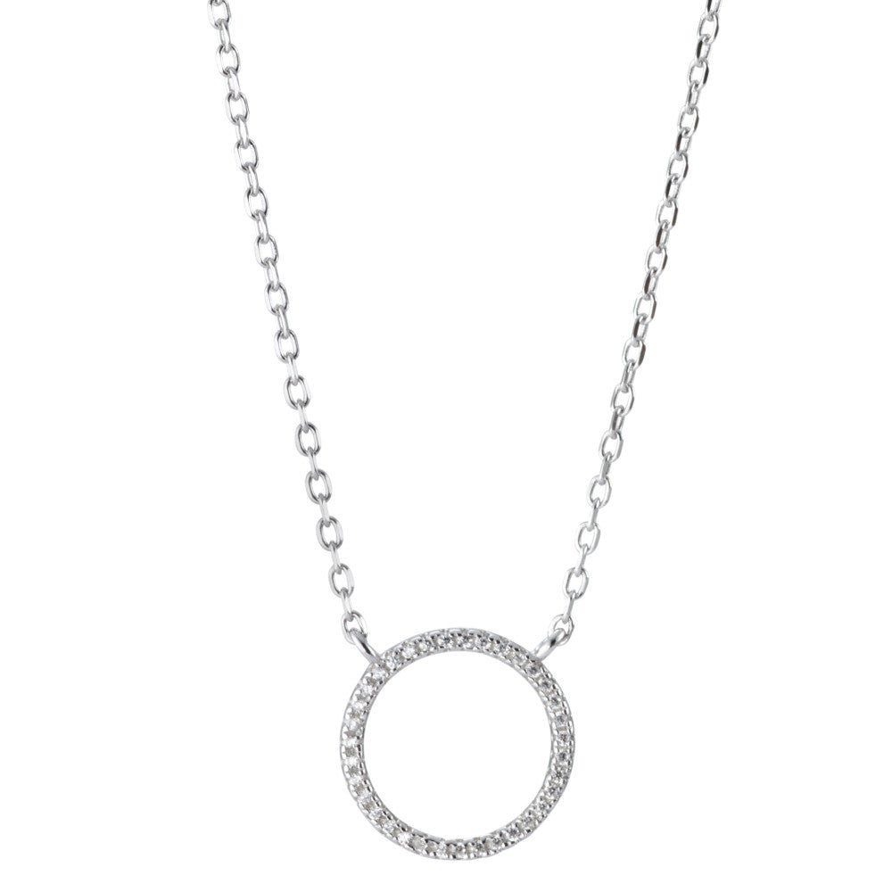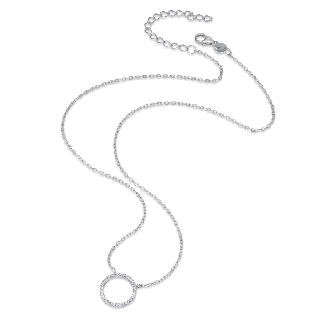 Elegantes Damen-Collier aus hochwertigem Silber mit funkelnden Zirkonia-Steinen. Der filigrane Rundanhänger setzt glamouröse Akzente und verleiht jedem Outfit einen stilvollen Touch. Perfekt für besondere Anlässe oder den Alltag – zeitlos und edel.
