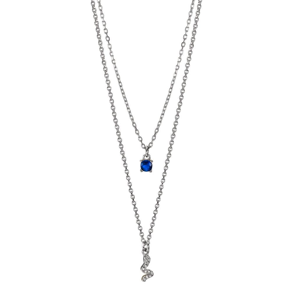 Elegantes Damen Collier aus hochwertigem Silber mit funkelnden Zirkonia-Steinen. Das doppelte Ketten-Design wird durch einen zarten Schlange-Anhänger und einen strahlend blauen Zirkonia ergänzt. Ein stilvolles Accessoire für jeden Anlass.