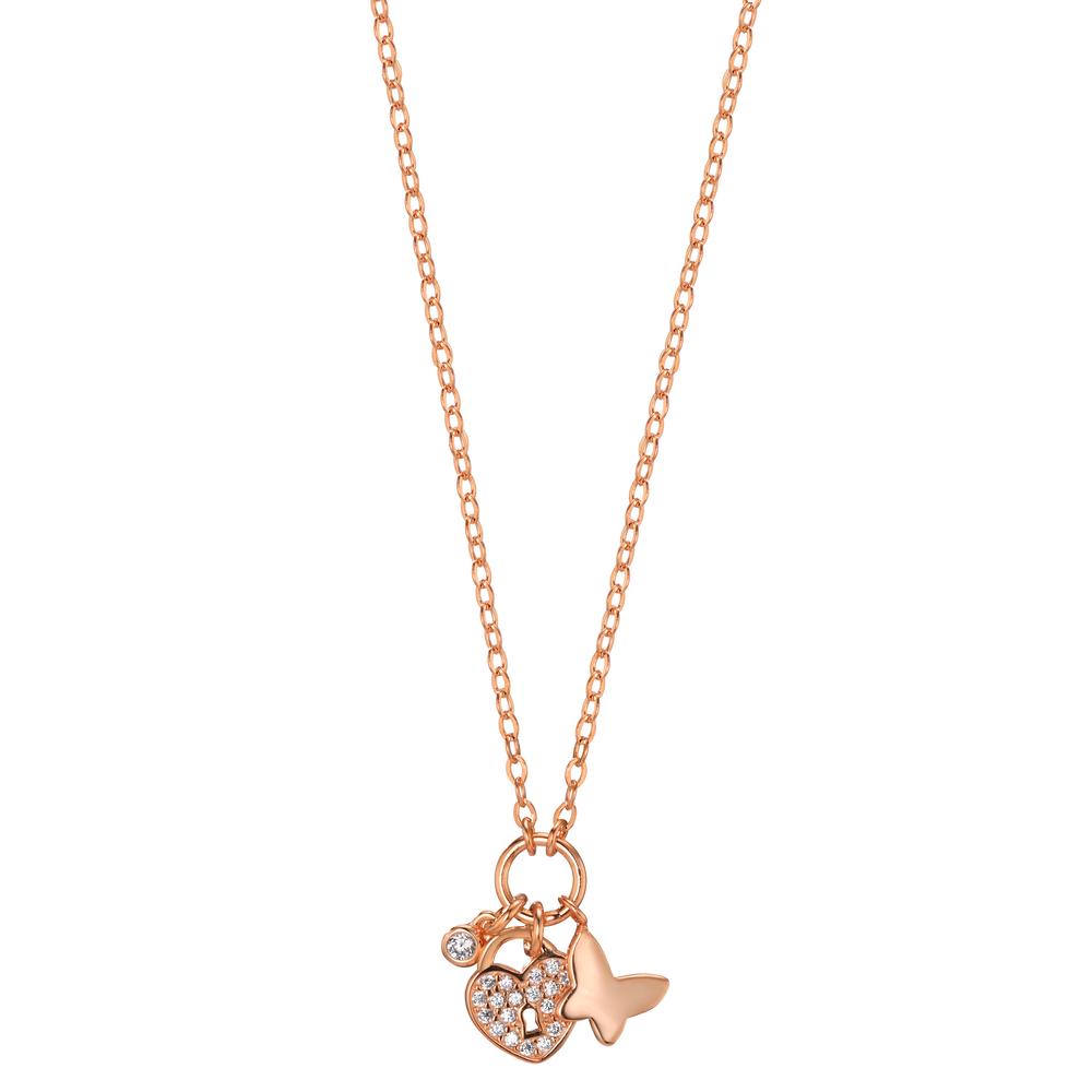 Collier Silber Zirkonia rosé vergoldet Herz Schmetterling 40-45 cm verstellbar