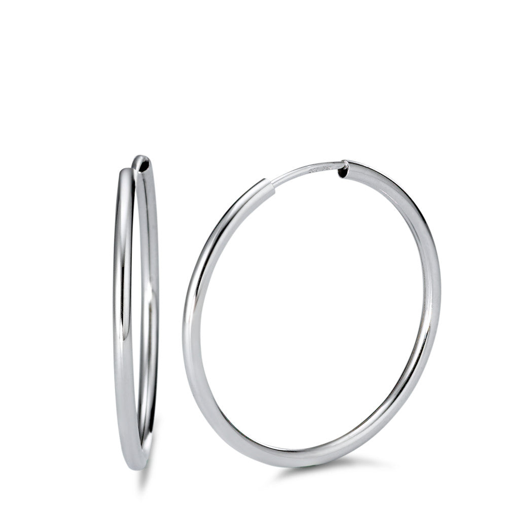 Elegante Damen-Creolen aus hochwertigem 585 Weißgold, die durch ihr zeitloses Design bestechen. Die schlichte, glänzende Oberfläche macht diese Ohrringe zu einem vielseitigen Accessoire, passend für jeden Anlass – klassisch, elegant und immer stilvoll.
