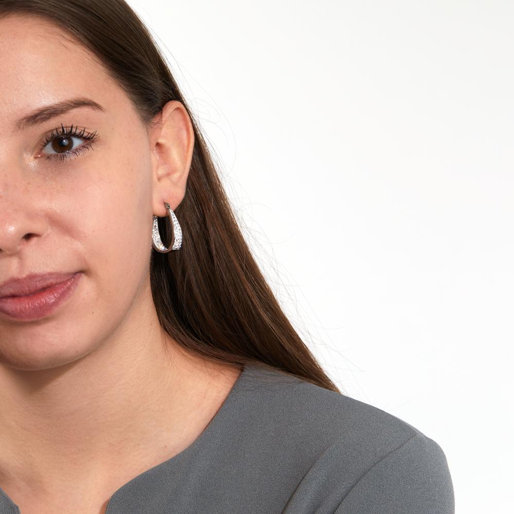 Elegante Damen-Creolen aus langlebigem Edelstahl, verziert mit funkelnden Zirkonia-Steinen. Die hochwertige Verarbeitung sorgt für ein angenehmes Tragegefühl und bringt jedes Outfit zum Strahlen. Perfekt für besondere Anlässe oder den Alltag. Ein zeitloses Schmuckstück!
