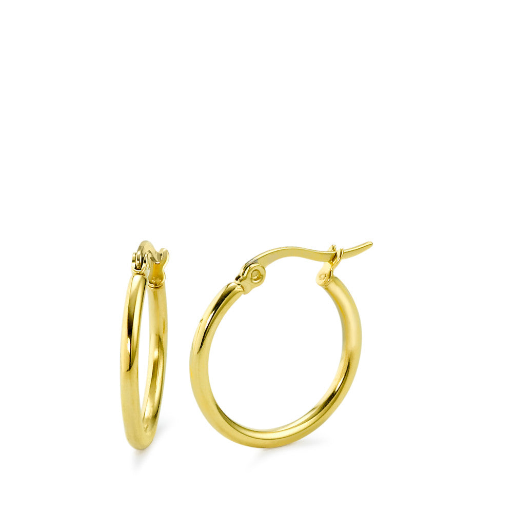 Elegante Damen-Creolen aus hochwertigem Edelstahl mit edler Gold-Beschichtung. Leicht und langlebig, ideal für Alltag und besondere Anlässe. Zeitloses Design, das jedem Outfit einen strahlenden Akzent verleiht. Hautfreundlich und widerstandsfähig gegen Anlaufen.