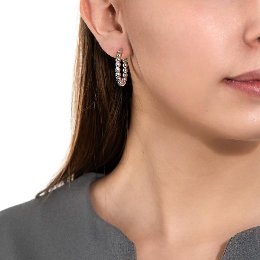 Diese eleganten Damen-Creolen aus hochwertigem Silber sind ein zeitloses Accessoire für jeden Anlass. Die kugelförmigen Elemente verleihen den Ohrringen einen modernen und zugleich klassischen Look. Perfekt, um Ihr Outfit stilvoll zu ergänzen. Leicht, bequem und langlebig.