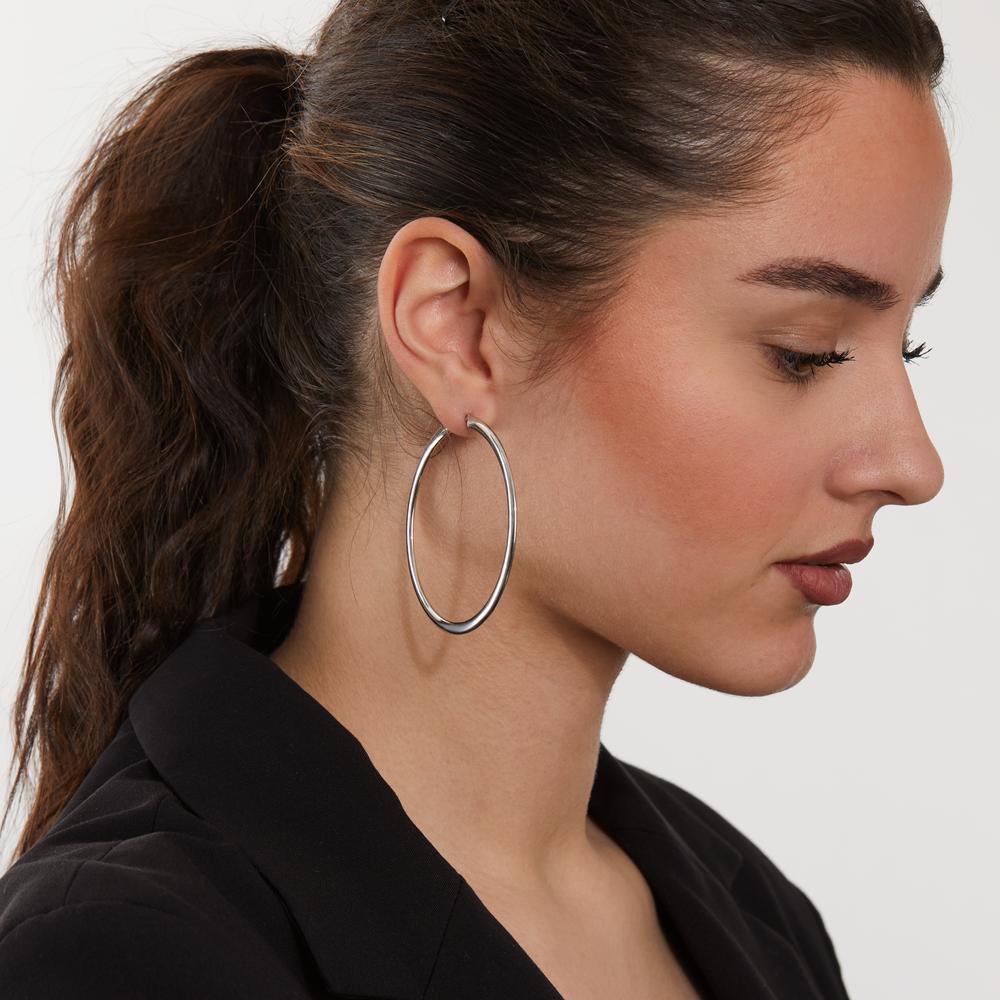 Zeitlose Damen-Creolen aus hochwertigem Silber. Die schlichten, glänzenden Ohrringe sind vielseitig kombinierbar und verleihen jedem Look eine elegante Note. Leicht und angenehm zu tragen – das perfekte Accessoire für jeden Anlass. Ein Must-have für stilbewusste Frauen.