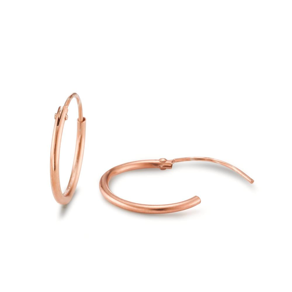 Diese eleganten Damen-Creolen aus hochwertigem rosévergoldetem Silber sind ein zeitloses Accessoire für jeden Anlass. Das schlichte, runde Design verleiht Ihrem Look eine dezente, feminine Note. Komfortabler Verschluss für sicheren Halt und angenehmes Tragen.