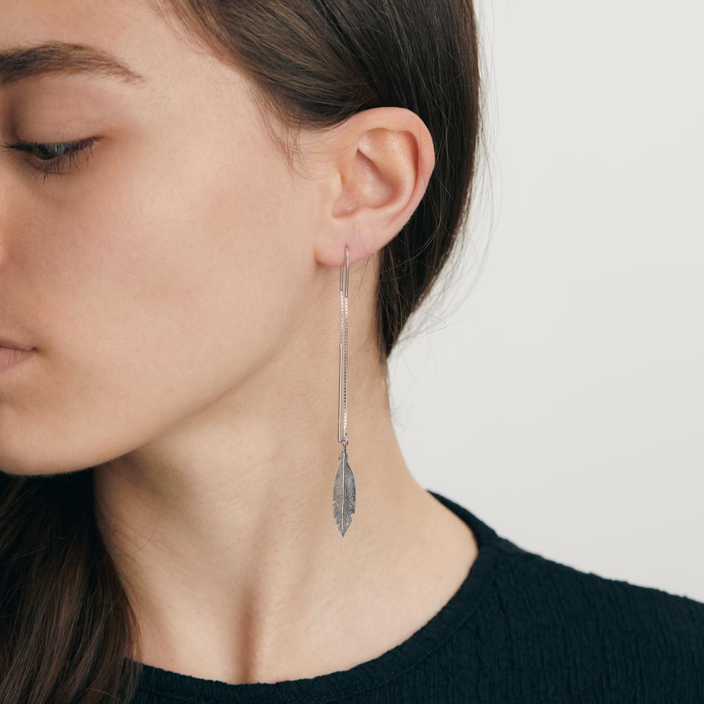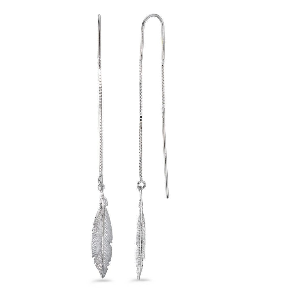 Diese Damen Durchziehohrhänger aus glänzendem Silber bestechen durch ihr filigranes Feder-Design. Leicht und elegant schmiegen sie sich an das Ohr und sorgen für einen trendigen, natürlichen Look. Perfekt für jeden Anlass – zeitlos und stilvoll.