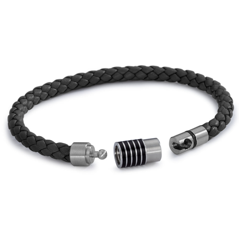Stilvolles Herrenarmband aus geflochtenem Leder mit robustem Edelstahlverschluss und eleganten Keramik-Details. Dieses Accessoire verbindet Langlebigkeit mit modernem Design und verleiht jedem Outfit eine maskuline, edle Note. Perfekt für Alltag und besondere Anlässe.
