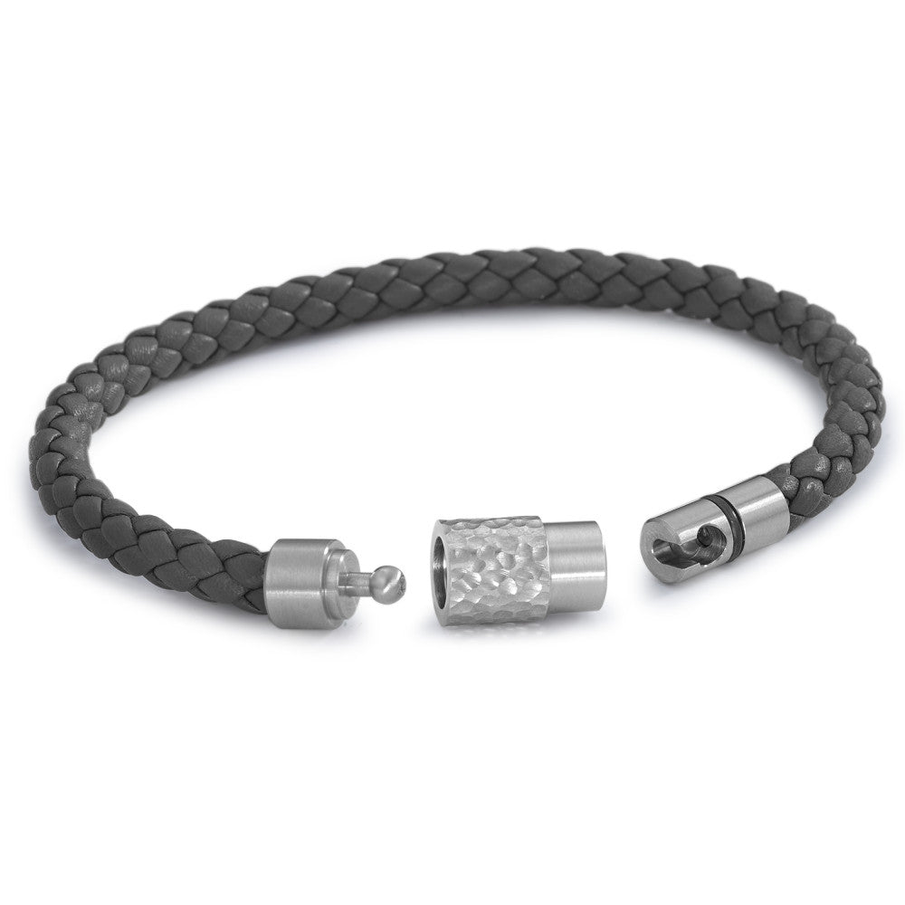 Stilvolles Herrenarmband aus geflochtenem schwarzem Leder mit robustem Edelstahlverschluss. Das zeitlose Design vereint Eleganz und Alltagstauglichkeit und macht es zum perfekten Accessoire für jeden Anlass. Ein maskulines Schmuckstück, das Komfort und Stil verbindet.