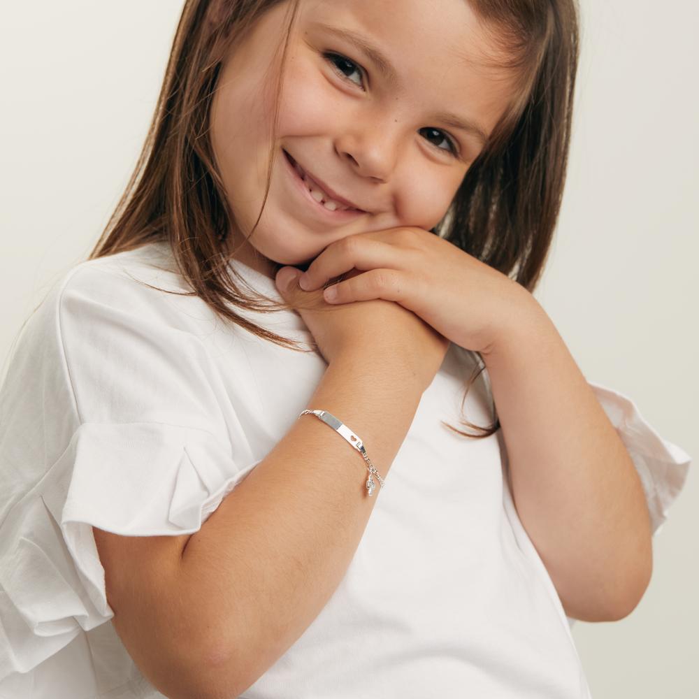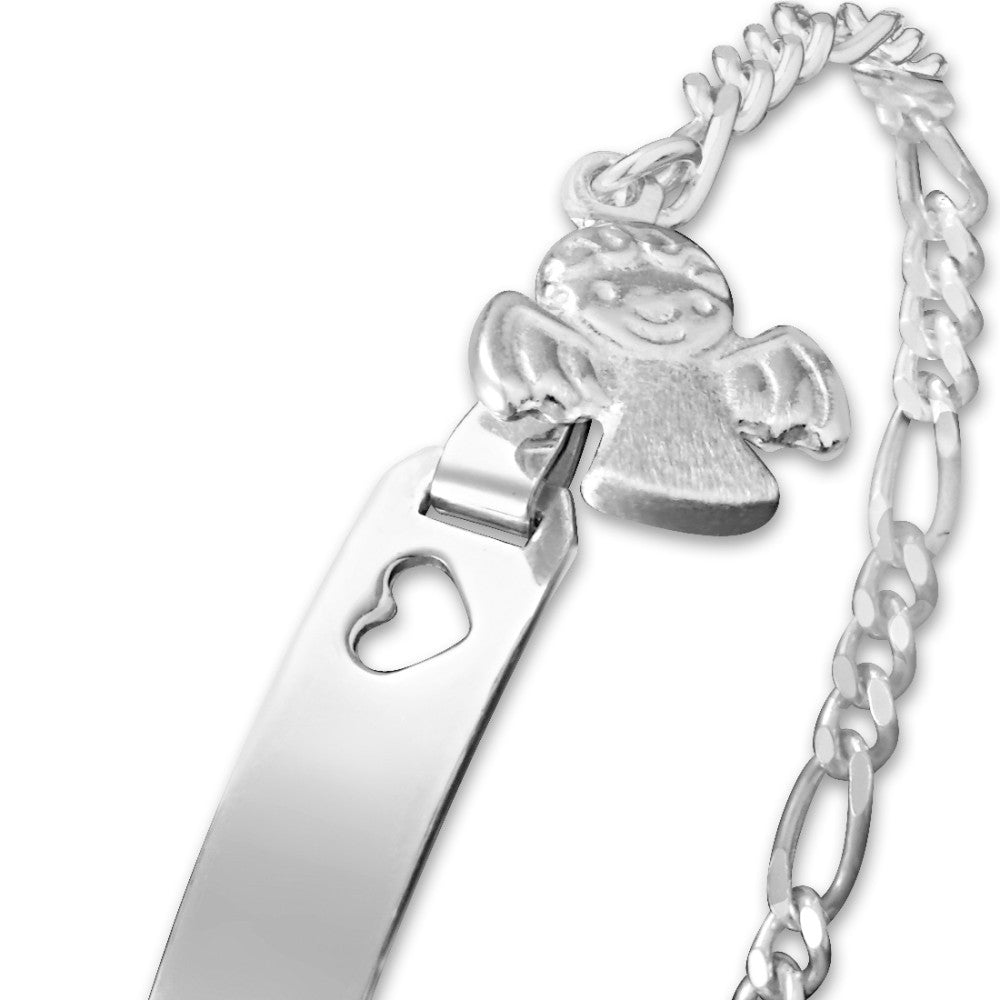 Wunderschönes Baby-Gravurarmband aus hochwertigem Silber mit süßem Engel-Anhänger. Perfekt als persönliches Geschenk zur Geburt oder Taufe. Die Gravurplatte bietet Platz für eine individuelle Namensgravur. Ein liebevolles Accessoire für die Kleinsten.