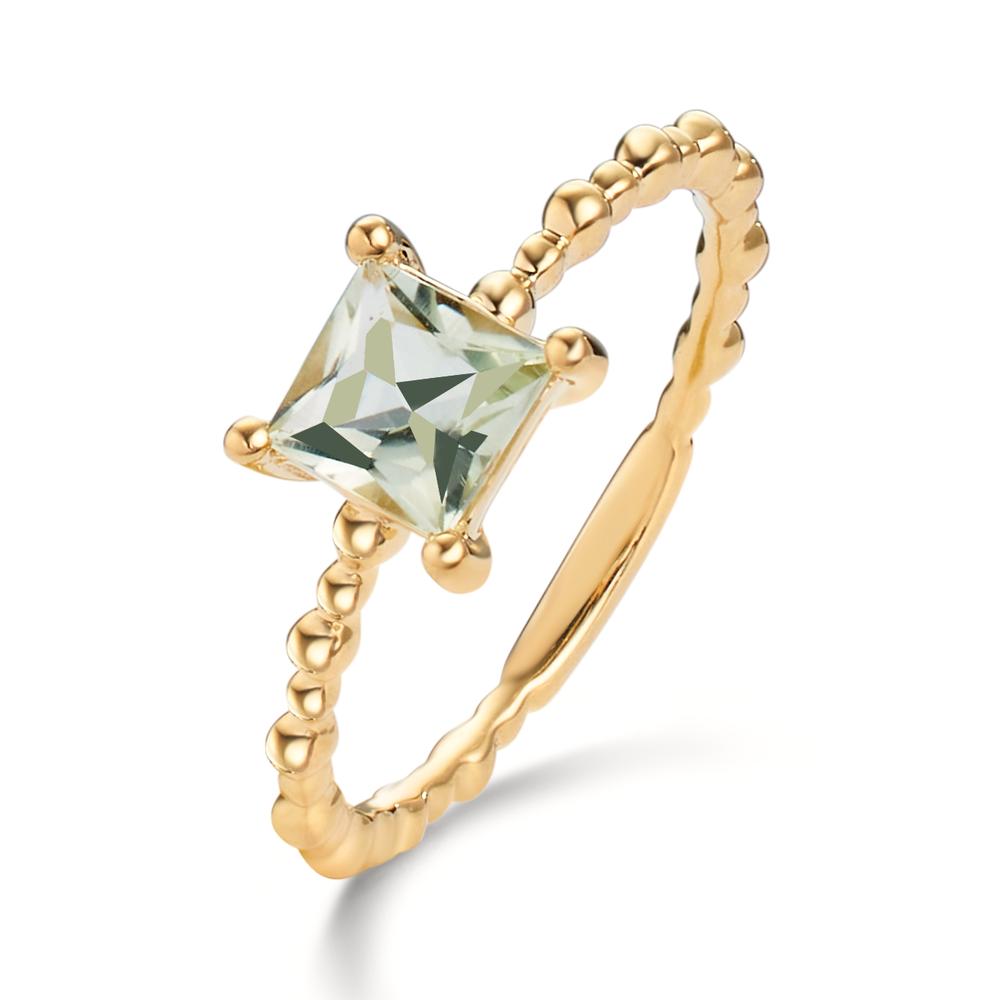 Eleganter Damen-Fingerring aus hochwertigem 375er Gelbgold mit funkelndem Amethyst in quadratischem Schliff. Das filigrane, kugelbesetzte Band verleiht dem Schmuckstück einen verspielten und zugleich edlen Charakter. Perfekt für jeden Anlass und außergewöhnlichen Look.