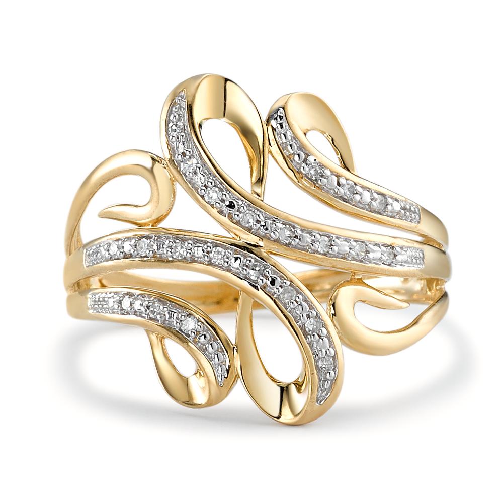 Fingerring 375/9 K Gelbgold Diamant 0.05 ct, 22 Steine, w-si