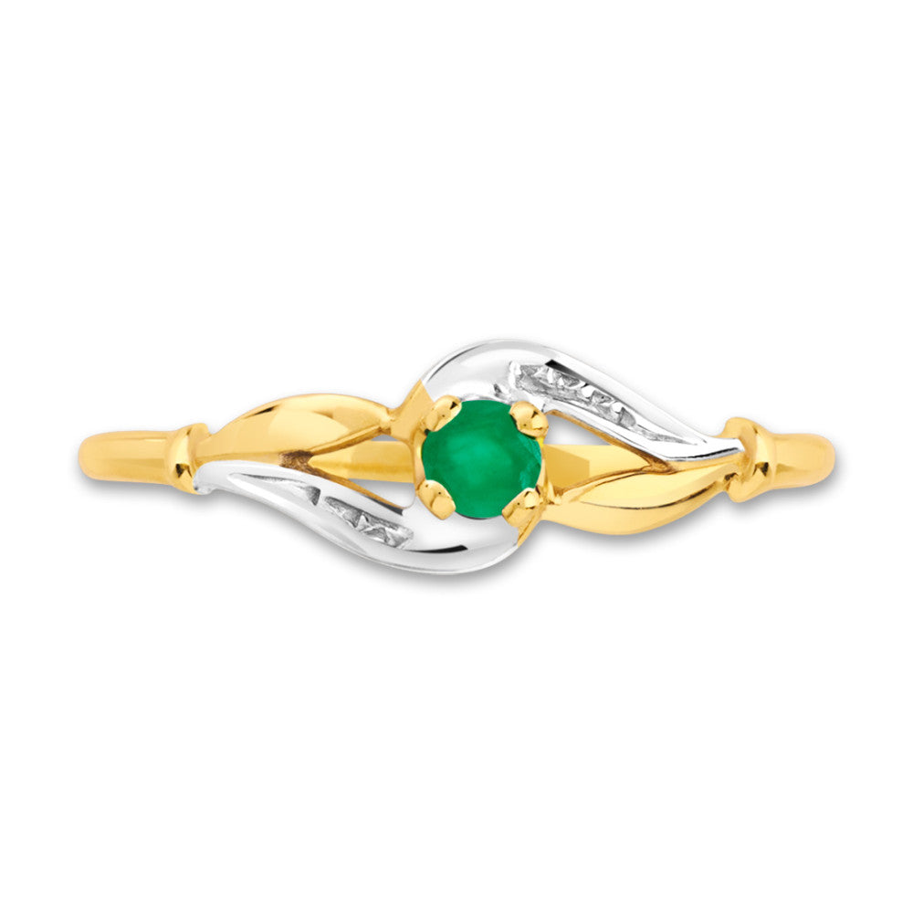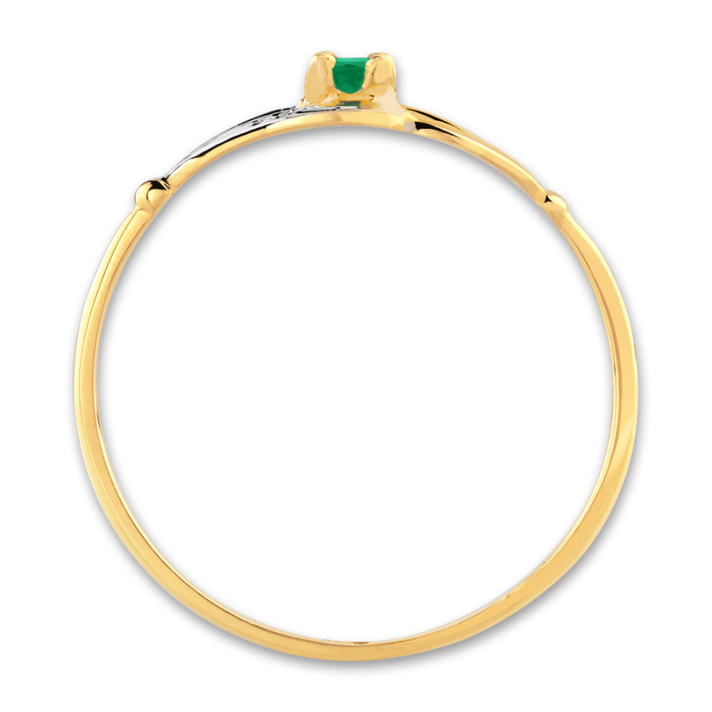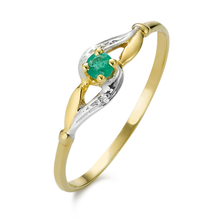 Eleganter Damenring aus 375er Gelbgold mit einem strahlenden Smaragd im Zentrum. Das filigrane Design kombiniert Gelb- und Weißgold-Elemente und setzt den grünen Edelstein perfekt in Szene. Ein zeitloses Schmuckstück für besondere Anlässe oder den Alltag.