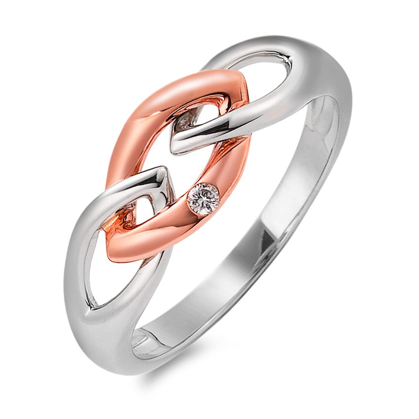 Fingerring 375/9 K Weissgold, 375/9 K Rotgold Diamant 0.02 ct, w-si