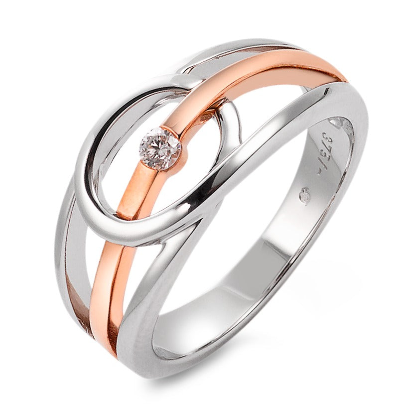 Fingerring 375/9 K Weissgold, 375/9 K Rotgold Diamant 0.05 ct, tw-si