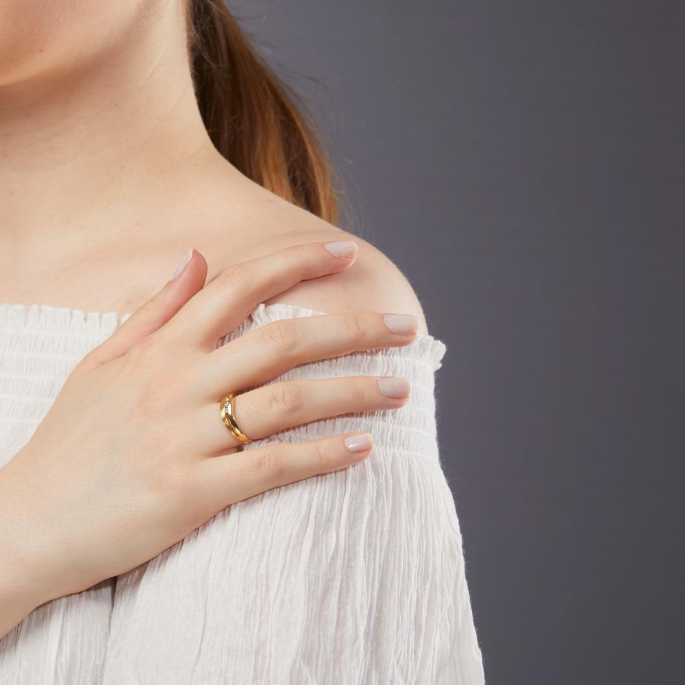 Eleganter Damenring aus 750er Gelbgold mit drei funkelnden Zirkonia-Steinen. Das Design besticht durch eine elegante Teilung des Rings, die den Schmuck besonders modern und stilvoll wirken lässt. Perfekt für jeden Anlass und ein strahlender Hingucker.