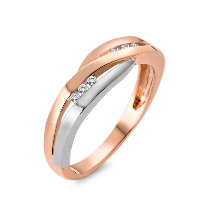 Fingerring 750/18 K Rotgold, 750/18 K Weissgold Diamant 0.06 ct, 6 Steine, w-si