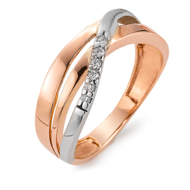 Fingerring 750/18 K Rotgold Diamant weiss, 0.06 ct, 6 Steine, w-si bicolor bicolor