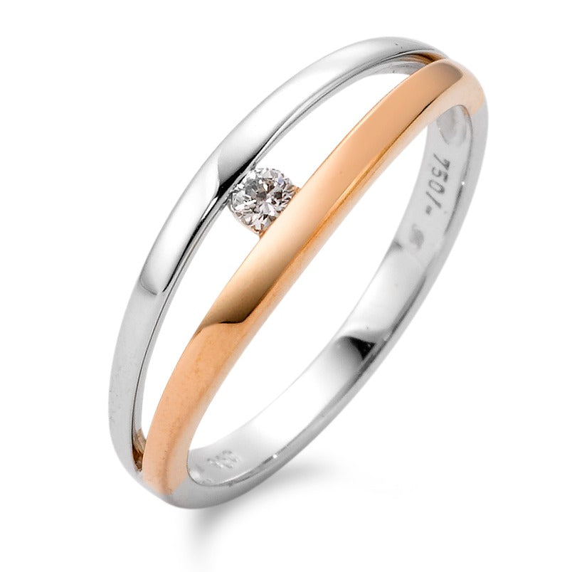 Fingerring 750/18 K Weissgold, 750/18 K Rotgold Diamant 0.06 ct, w-si