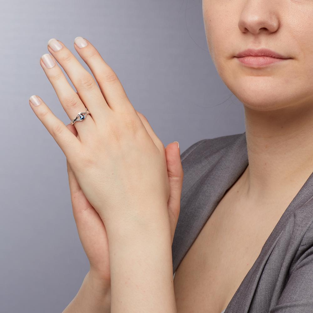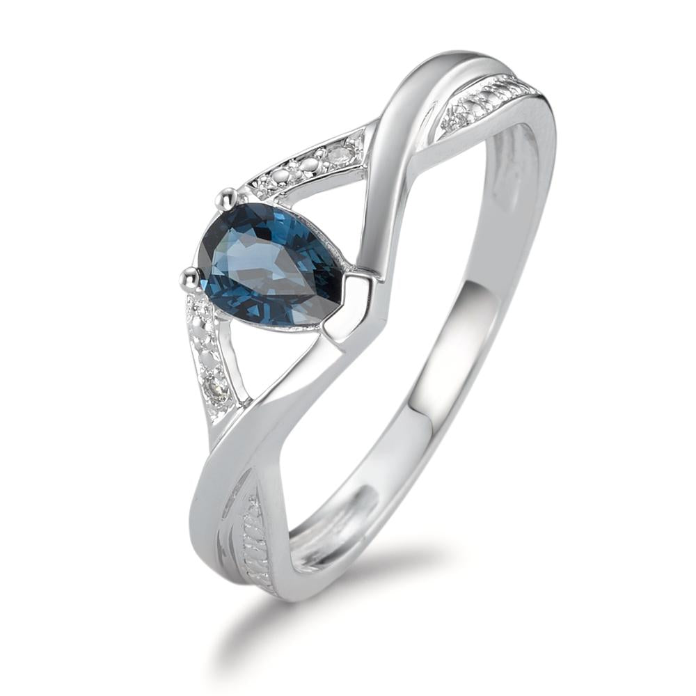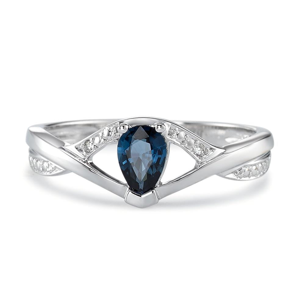Fingerring 750/18 K Weissgold Saphir blau, Tropfen, Diamant 0.01 ct, 2 Steine