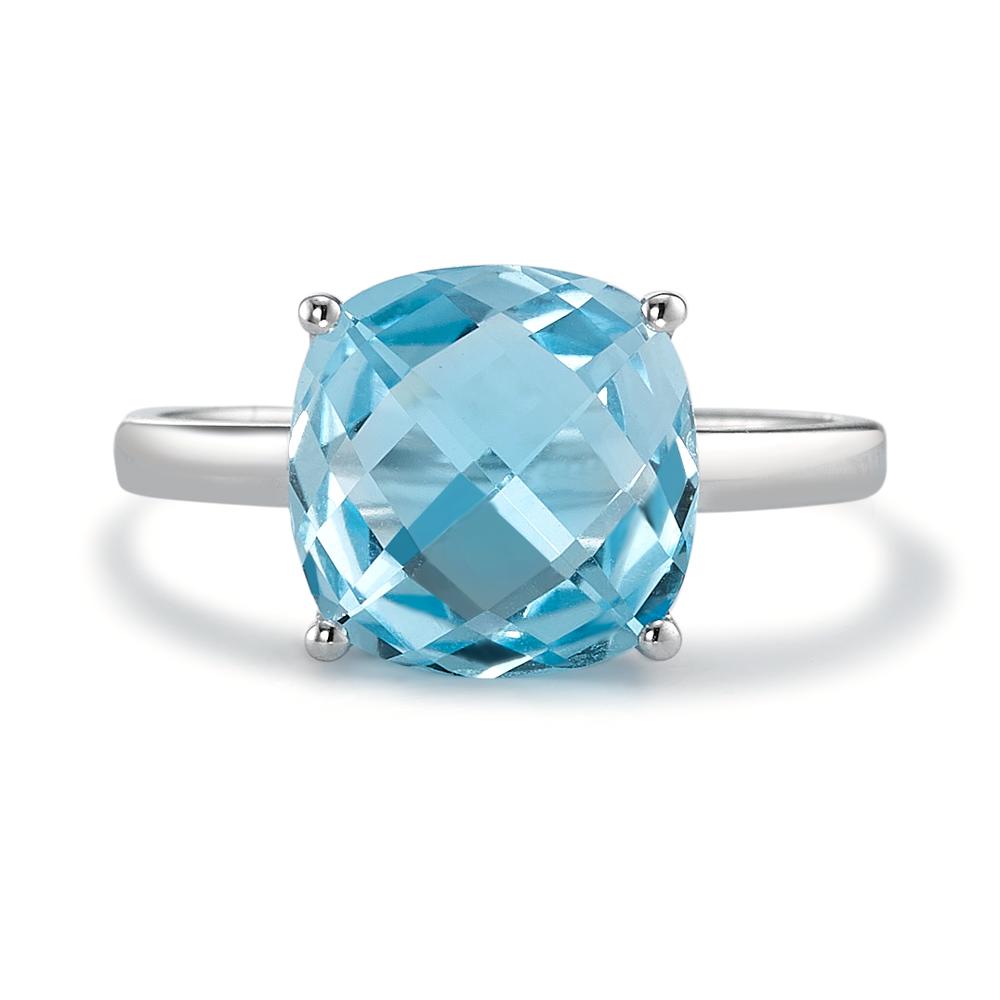Eleganter Damenring aus 750er Weißgold mit einem funkelnden, quadratisch facettierten Topas in strahlendem Blau. Das zeitlose Design verbindet edle Materialien mit modernem Stil – ein perfektes Schmuckstück für besondere Anlässe oder den täglichen Luxus.