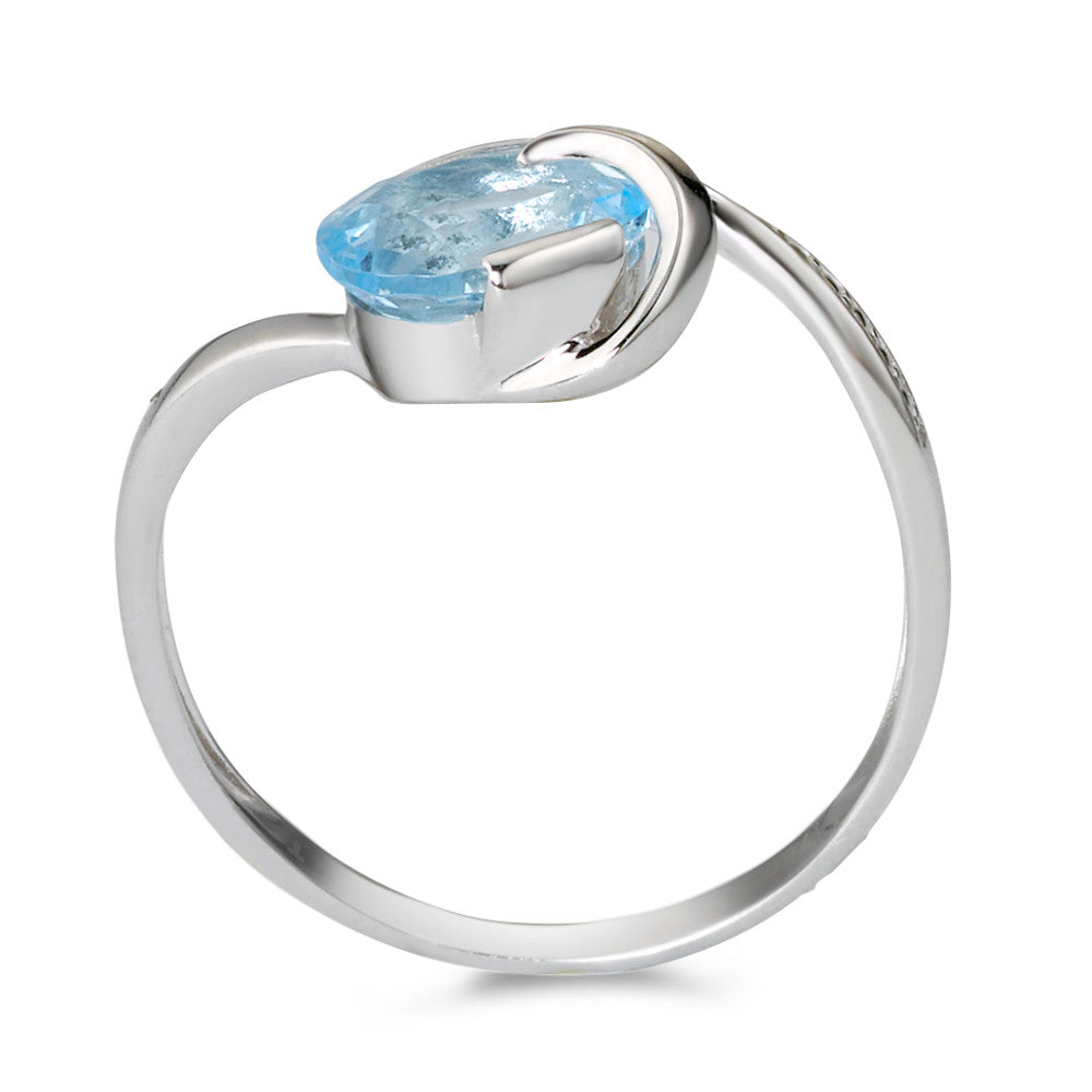 Fingerring 750/18 K Weissgold Topas blau, oval, Diamant weiss, 0.005 ct, w-si