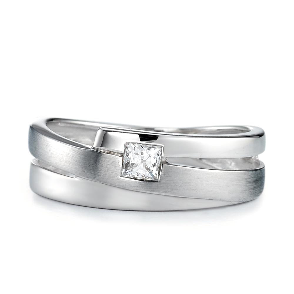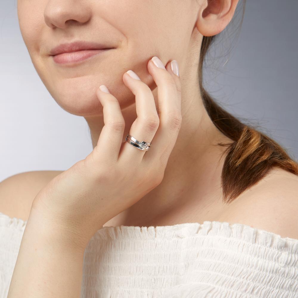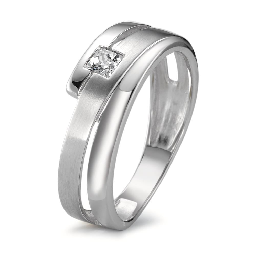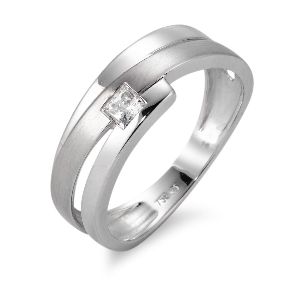 Moderner Damen Fingerring aus hochwertigem 750er Weißgold mit einem funkelnden Zirkonia. Das elegante Design kombiniert polierte und mattierte Oberflächen für einen stilvollen Look. Perfekt als Geschenk oder für den besonderen Anlass. Zeitlos und elegant.