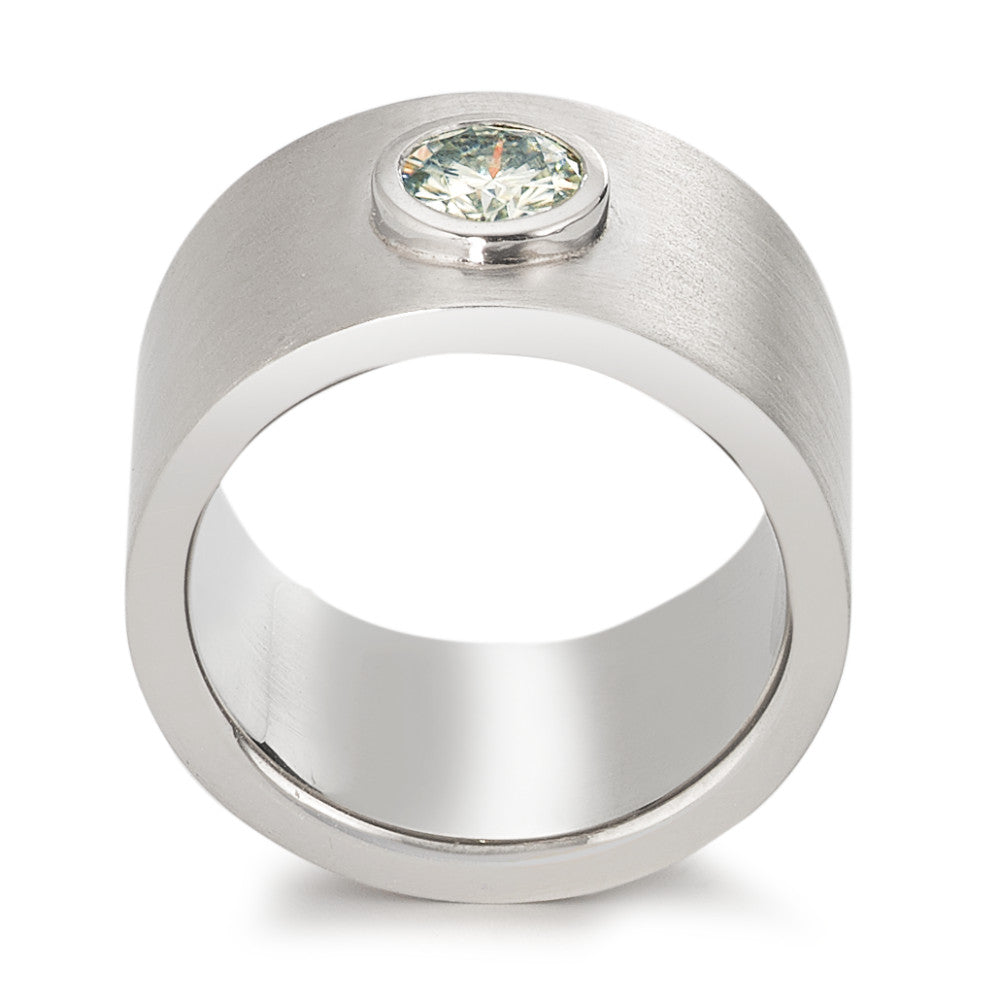 Dieser Damen Fingerring aus 950er Platin besticht durch sein modernes, breites Design. Der wunderschöne, funkelnde Moissanite-Stein ist sicher in einer Fassung eingefasst und verleiht dem hochwertigen Ring einen eleganten Glanz. Ein zeitloses Schmuckstück für stilbewusste Frauen.