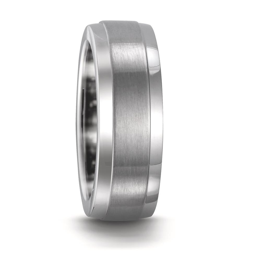 Moderner Fingerring aus hochwertigem Edelstahl mit mattiertem Mittelteil und polierten Kanten. Zeitloses Design, das sowohl im Alltag als auch zu besonderen Anlässen überzeugt. Robust, langlebig und hautfreundlich – der perfekte Begleiter für Männer und Frauen.