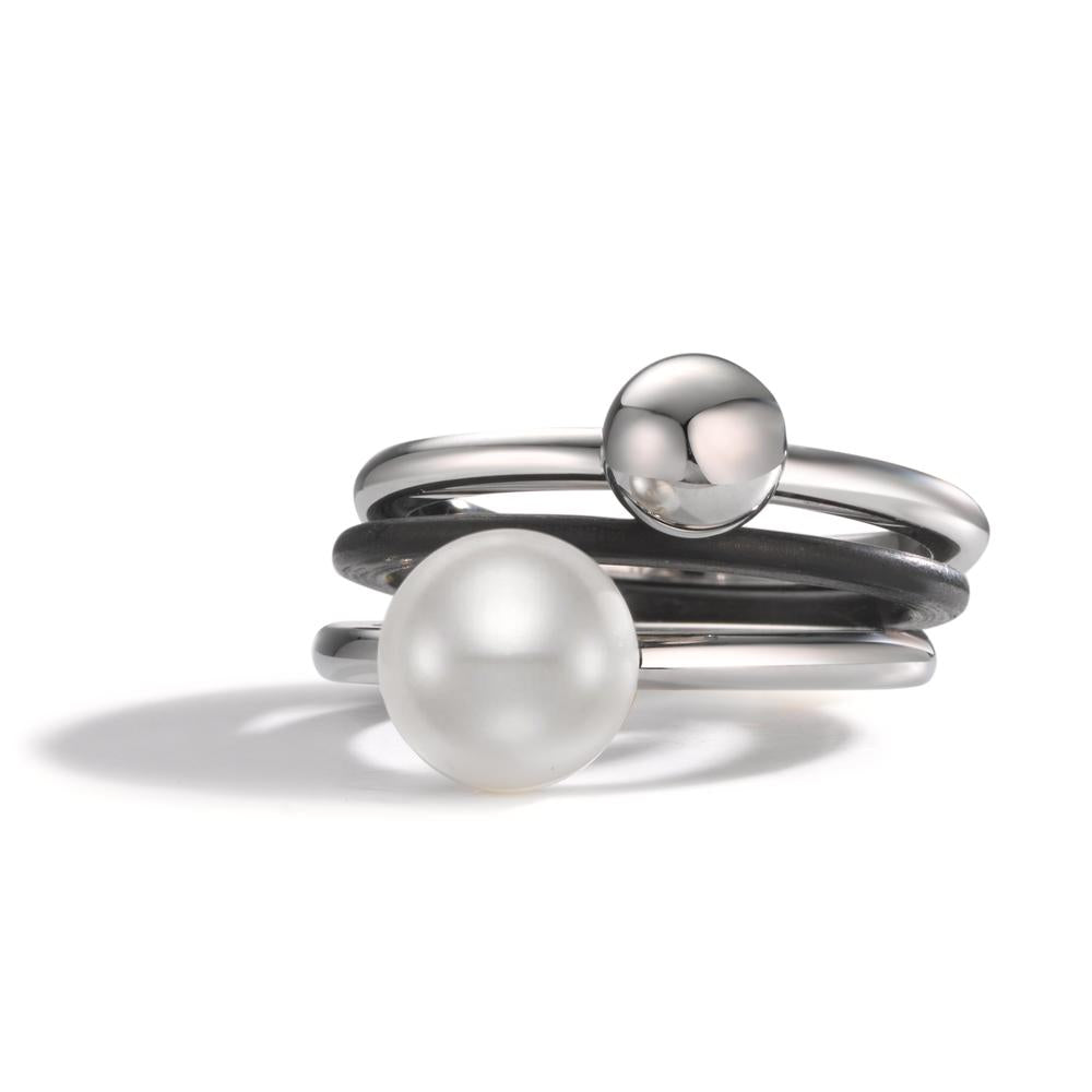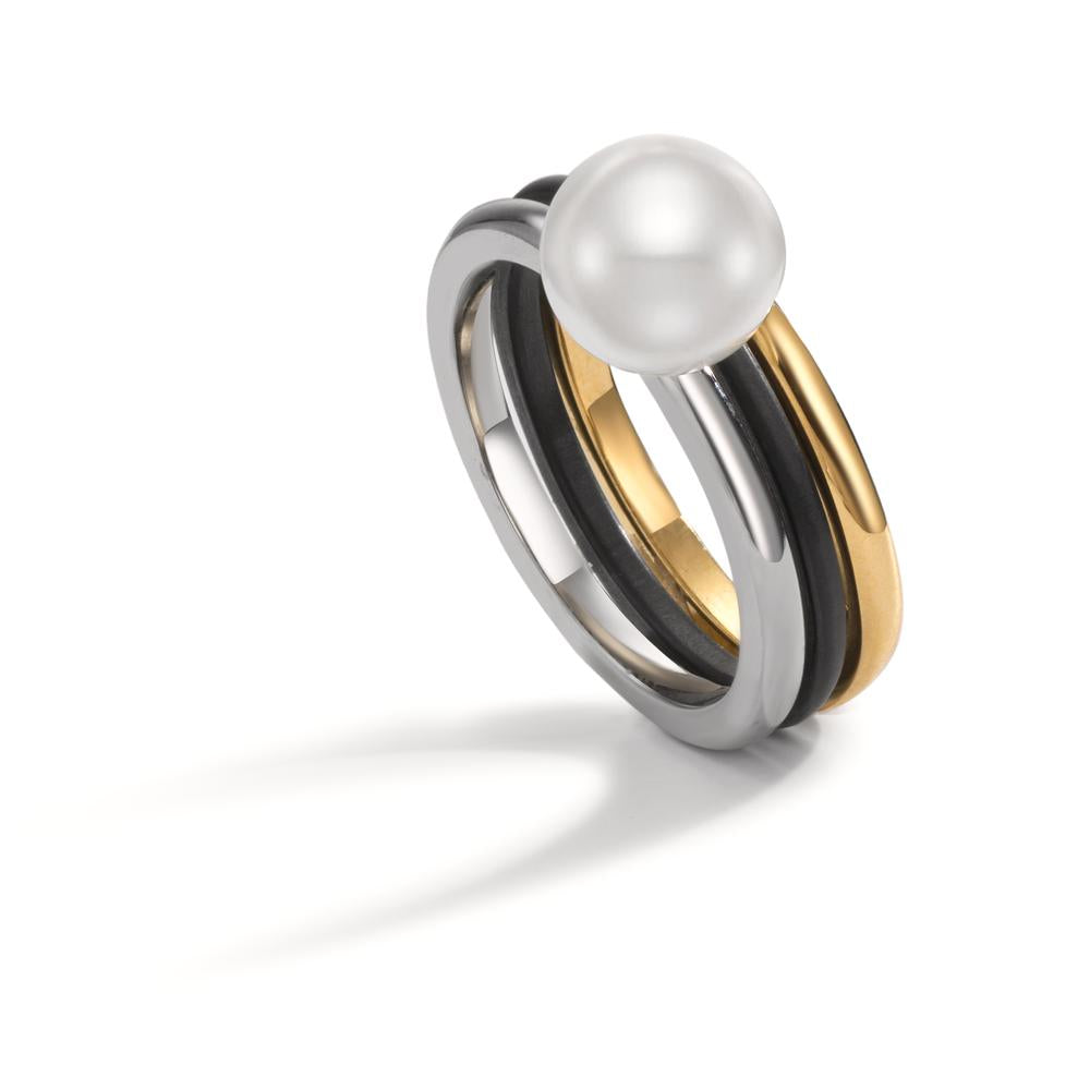 Fingerring Edelstahl Muschelperle weiss, 8 mm