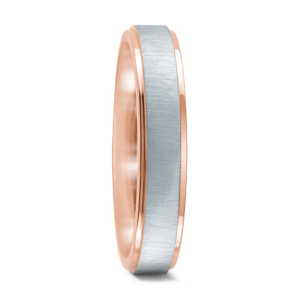 Moderner Fingerring aus hochwertigem Edelstahl mit einem markanten zweifarbigen Design: matt silberner Mittelstreifen und glänzende roségoldfarbene Ränder. Elegant, strapazierfähig und ideal für jeden Anlass. Perfekt als stylisches Accessoire oder Geschenk.