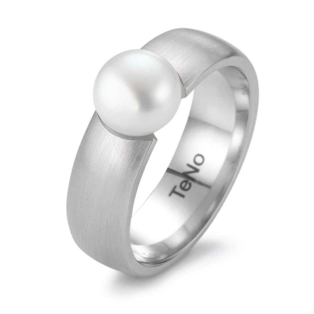 Fingerring Edelstahl Süsswasserzuchtperle weiss, 6 mm