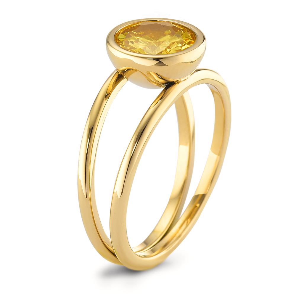 Fingerring Edelstahl Zirkonia gelb gelb IP beschichtet Ø9.5 mm