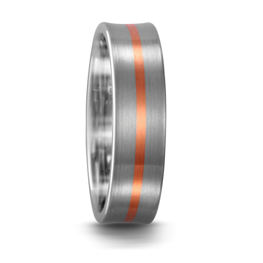 Moderner Fingerring aus Palladium mit elegantem, mattem Finish. Highlight ist der dezente, durchgängige Streifen in warmem Kupferton, der dem Ring eine besondere Note verleiht. Robustes Material, ideal für den täglichen Gebrauch und besondere Anlässe.