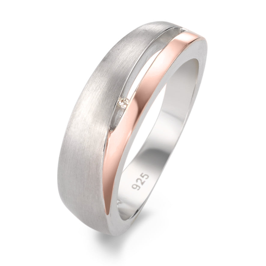 Fingerring Silber Diamant 0.006 ct, si rosé vergoldet