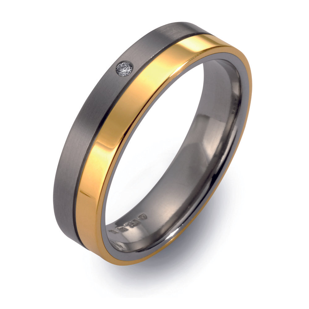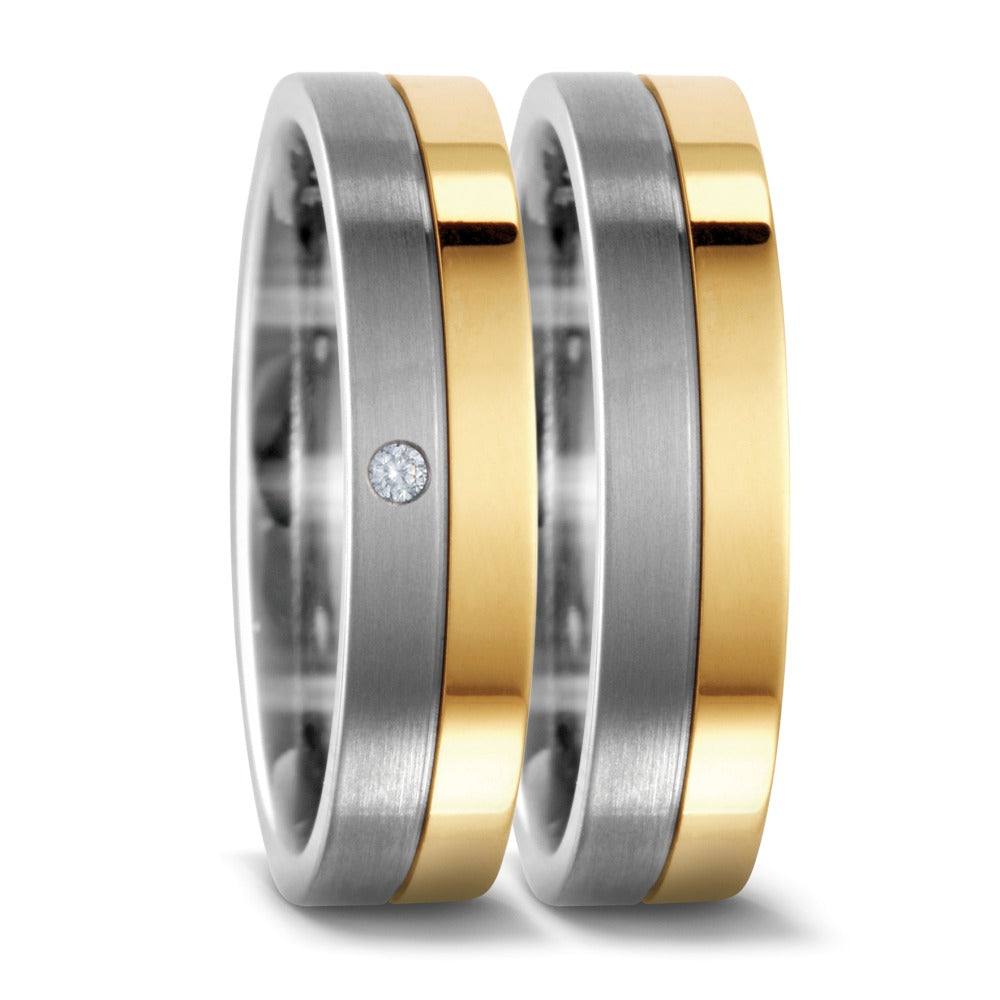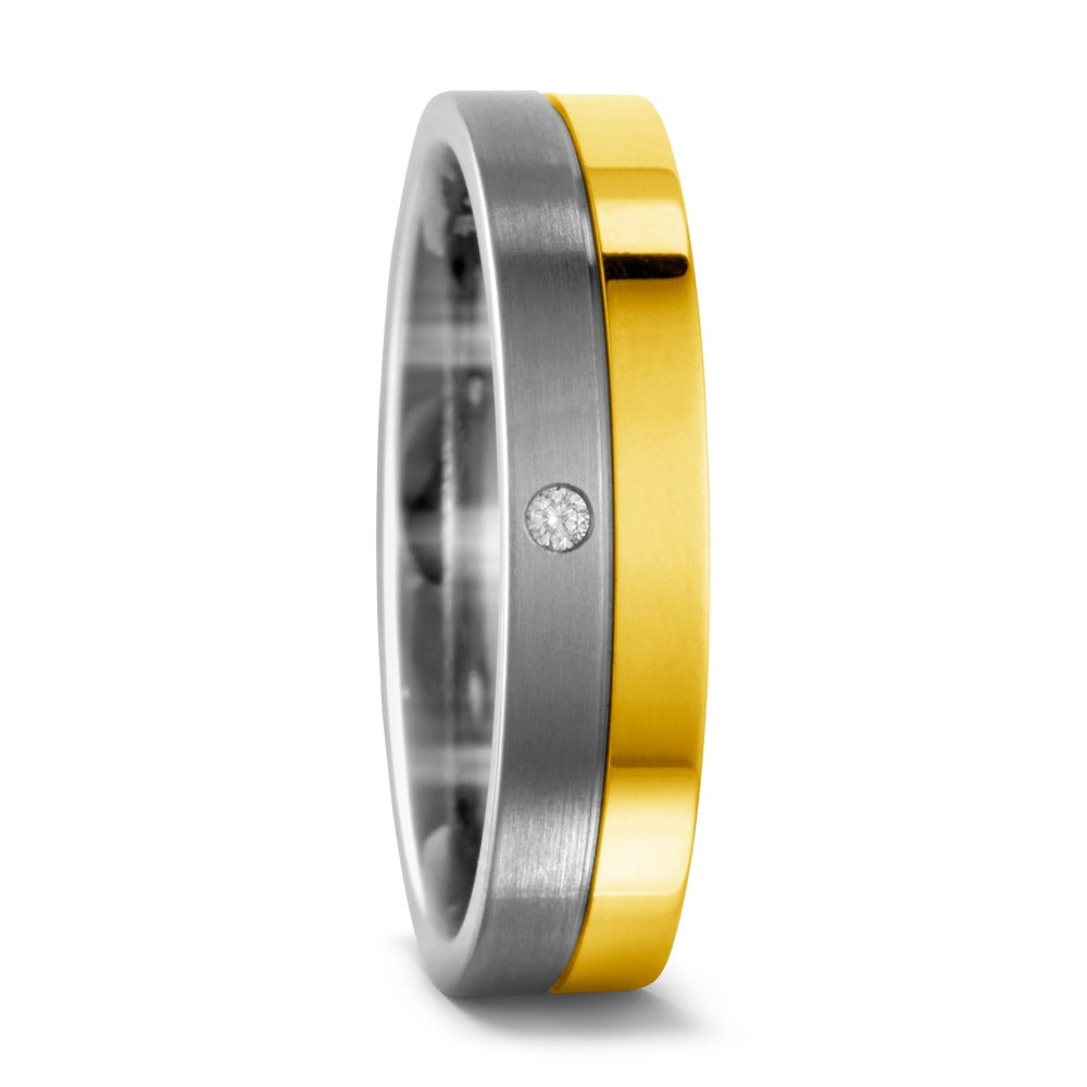 Eleganter Damenfingerring aus robustem Titan und 750er Gelbgold verbindet moderne Materialien mit klassischem Design. Ein funkelnder Diamant setzt einen edlen Akzent und macht den Ring zum perfekten Accessoire für besondere Momente und den Alltag. Stilvoll und zeitlos!