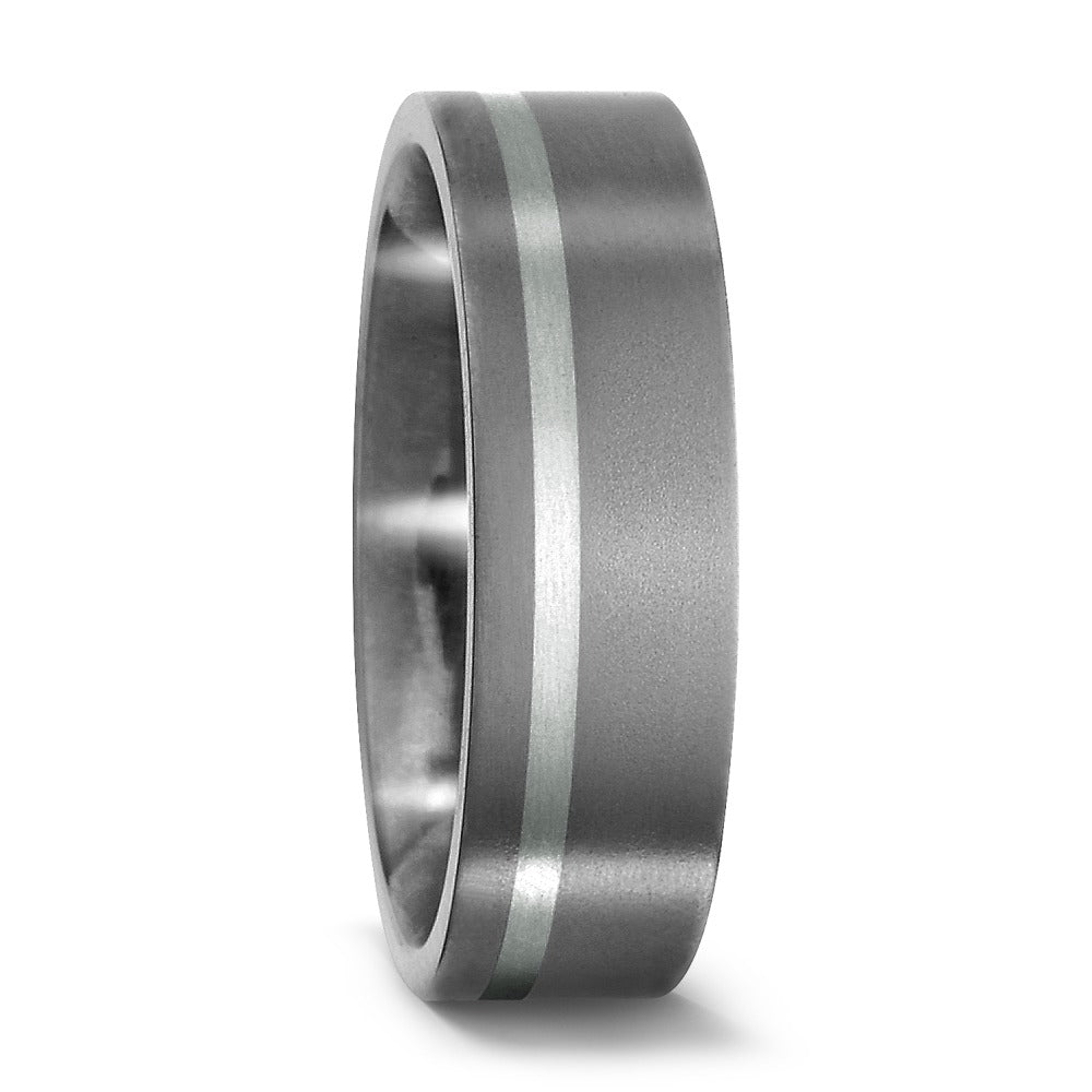 Moderner Fingerring aus robustem Titan mit einer eleganten Einlage aus 950 Platin. Das matte Grau des Titans harmoniert perfekt mit dem edlen Platin-Streifen, der diesem Ring einen zeitlosen und stilvollen Charakter verleiht. Ideal für jeden Tag und besondere Anlässe.