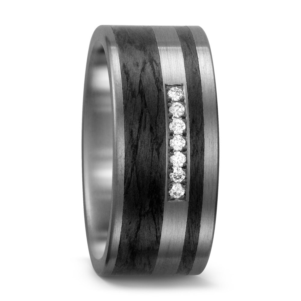 Fingerring Titan, Carbon Diamant weiss, 0.07 ct, 7 Steine, w-si