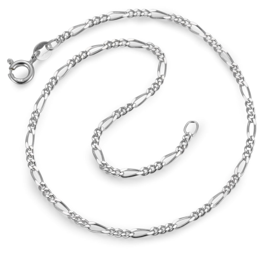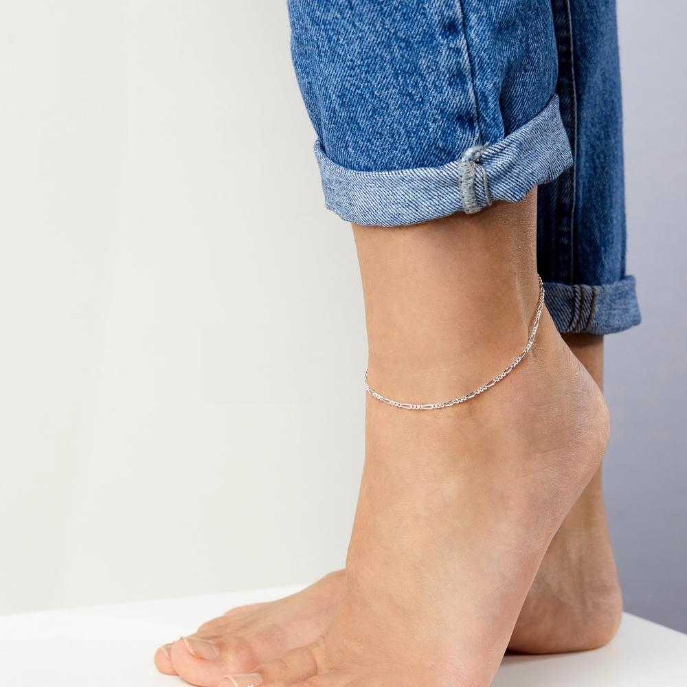 Elegantes Damen Fußkettchen aus hochwertigem Silber mit feinem Figaro-Muster. Das zeitlose Schmuckstück verleiht jedem Sommeroutfit einen stilvollen Akzent und ist dank stabilem Federringverschluss angenehm zu tragen. Perfekt für Alltag und besondere Anlässe.