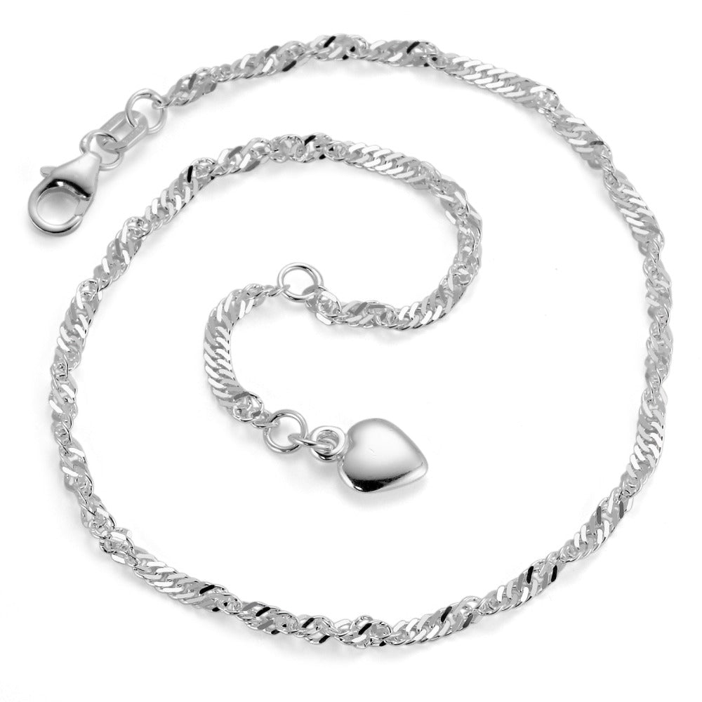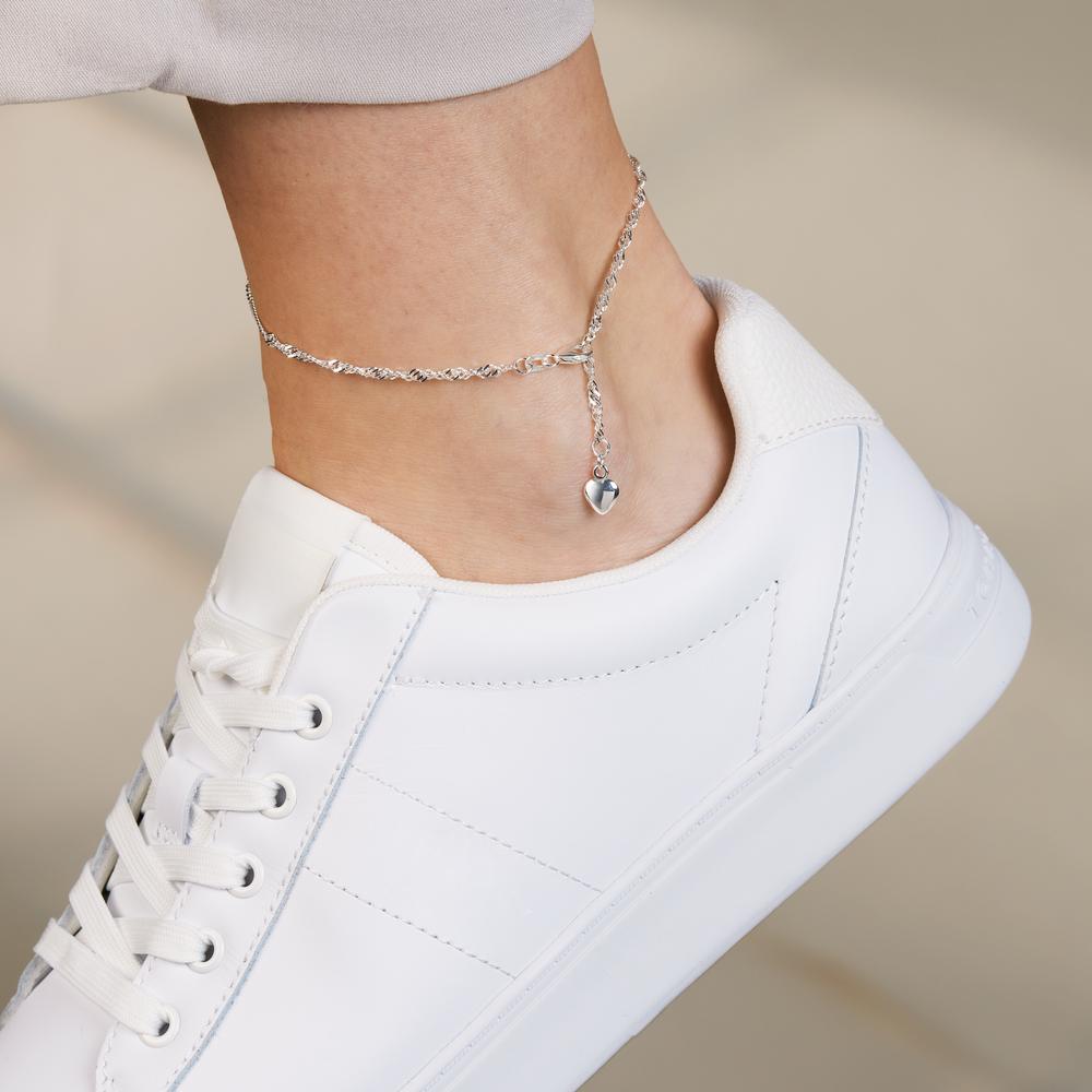 Elegantes Damen-Fußkettchen aus hochwertigem Silber mit zartem Herz-Anhänger. Das filigrane Design verleiht jedem Sommeroutfit einen femininen und stilvollen Akzent. Verstellbare Länge für perfekten Sitz und bequemen Tragekomfort. Ein schönes Geschenk oder Accessoire für besondere Anlässe.