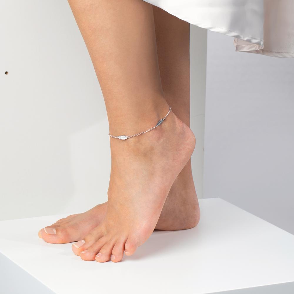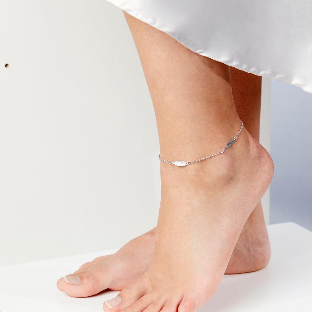Elegantes Damen Fußkettchen aus hochwertigem Silber mit zarten Feder-Anhängern. Das filigrane Design verleiht jedem Sommeroutfit eine leichte, verspielte Note. Dank verstellbarer Länge passt es perfekt an jeden Fuß und sorgt für einen stilvollen Auftritt. Ideal für jede Gelegenheit!