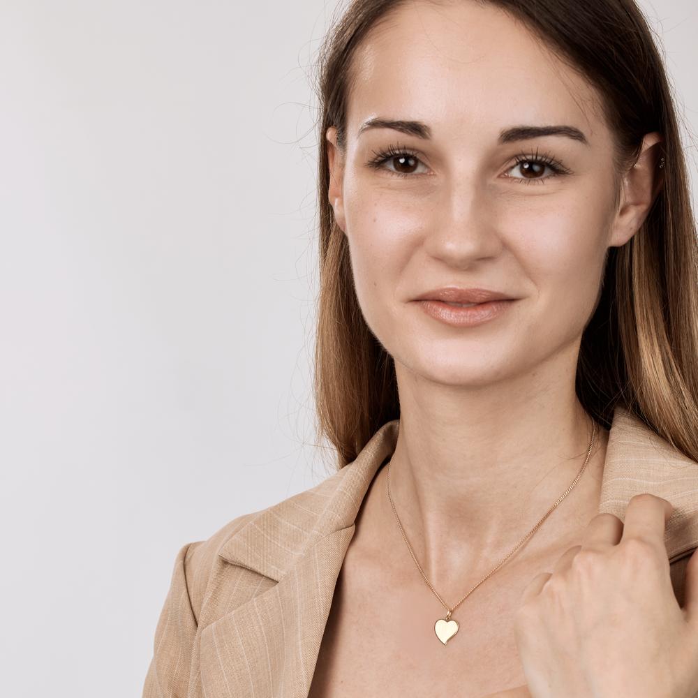 Zeitloser Gravuranhänger in Herzform aus hochwertigem 750er Gelbgold. Perfekt, um persönliche Botschaften oder Initialen individuell eingravieren zu lassen. Ein stilvolles Schmuckstück, das Zuneigung auf besondere Weise ausdrückt. Ideal als Geschenk für besondere Menschen.