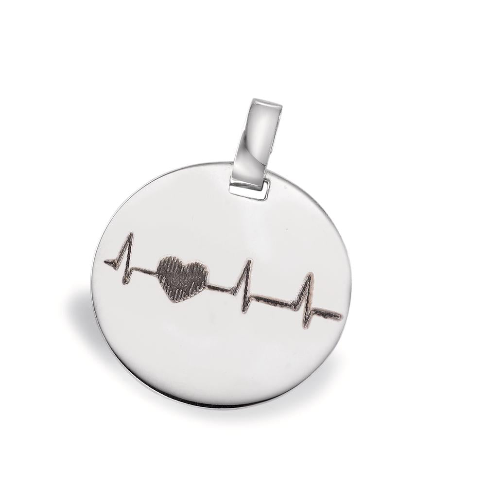 Moderner Gravuranhänger aus hochwertigem Silber. Die glatte, runde Oberfläche lässt sich individuell mit Namen, Datum oder einer Botschaft gravieren – perfekt als persönliches Geschenk oder Erinnerungsstück. Elegant, zeitlos und vielseitig kombinierbar.