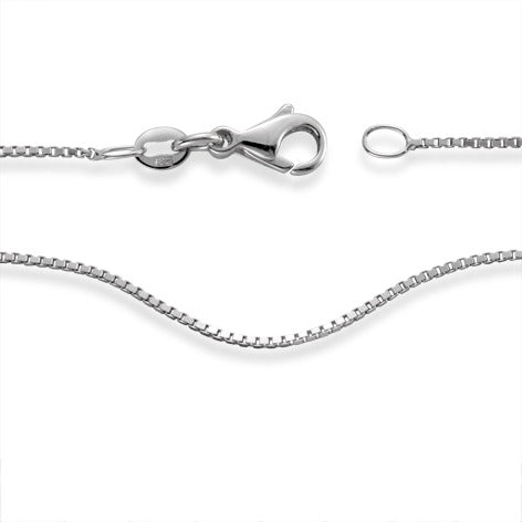 Elegante Halskette aus hochwertigem 750er Weißgold. Fein gearbeitete Boxkettenglieder sorgen für einen modernen und zugleich zeitlosen Look. Perfekt als stilvolles Accessoire für jeden Anlass oder zum Tragen mit Anhängern. Länge und Verschluss bieten sicheren Halt und Komfort.